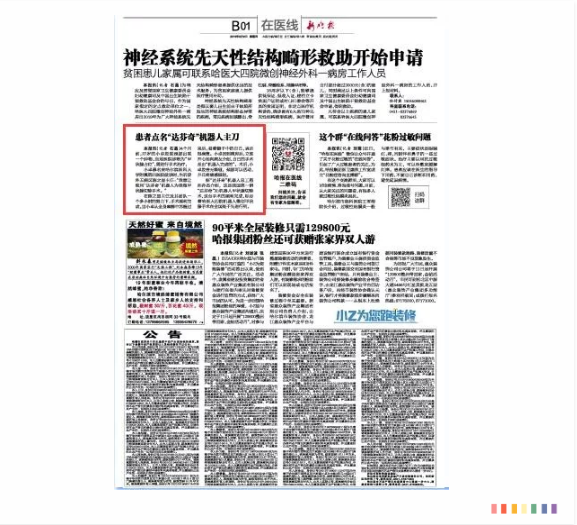 據(jù)《新晚報(bào)》2019年8月8日第B01版報(bào)道,27歲的患者小卓(化名)發(fā)現(xiàn)頸部有腫物,當(dāng)?shù)蒯t(yī)院診斷為“甲狀腺占位”,需進(jìn)行手術(shù)治療。該患者來(lái)到哈爾濱醫(yī)科大學(xué)附屬第四醫(yī)院就診點(diǎn)名希望使用達(dá)芬奇機(jī)器人進(jìn)行甲狀腺切除手術(shù)。在主任陳之顯及其團(tuán)隊(duì)一個(gè)多小時(shí)的努力下,手術(shù)順利完成。這是我國(guó)首例“達(dá)芬奇”Xi機(jī)器人甲狀腺切除術(shù),這臺(tái)手術(shù)的順利完成,標(biāo)志著哈醫(yī)大四院機(jī)器人微創(chuàng)甲狀腺手術(shù)在全國(guó)處于先進(jìn)行列。