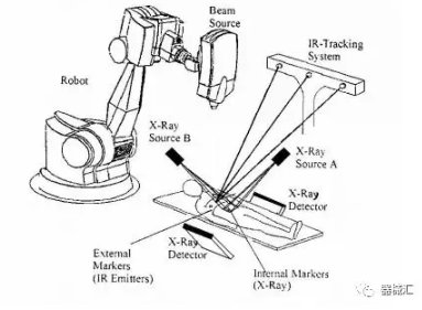 目前主要是賽博刀(Cyber knife)系統(tǒng)在使用這種方式,當(dāng)然也有在以前的不具備IGRT功能的常規(guī)加速器系統(tǒng)中增加這樣一套定位系統(tǒng)的,例如江蘇瑞爾醫(yī)療科技公司就主要從事類似的雙X線圖像引導(dǎo)系統(tǒng)的研制和安裝使用,并取得了不錯的反響。