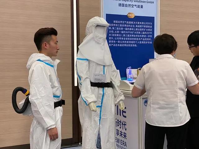 今天的對接會上,醫(yī)療器械及醫(yī)藥保健展區(qū)部分展品精彩“劇透”。德國自然空氣能量解決方案有限公司帶來了一款多合一醫(yī)用個人防護系統(tǒng),該產(chǎn)品將在第三屆進博會上正式全球首發(fā)。