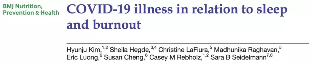 原始出處Hyunju Kim1,2, Sheila Hegde3,4, Christine LaFiura5, Madhunika Raghavan5, Eric Luong6, Susan Cheng6, Casey M Rebholz1,2 and Sara B Seidelmann7,8.COVID-19 illness in relation to sleep and burnout, BMJ Nutrition Prevention & Health, DOI: 10.1136/bmjnph-2021-000228