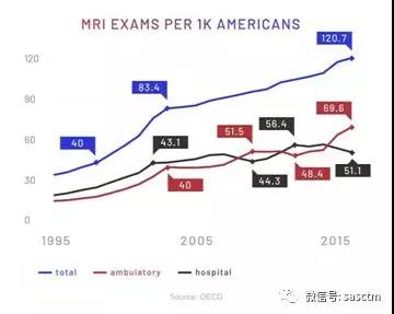 到2016年,平均每1千名美國人大約接受了121次MRI掃描檢查。而在加拿大和澳大利亞,這一數(shù)字分別是56和43次。最近的觀點(diǎn)是MRI是美國過于昂貴的醫(yī)保支付系統(tǒng)的終極力證。成為了拖垮美國醫(yī)保費(fèi)用的“原罪”之一。