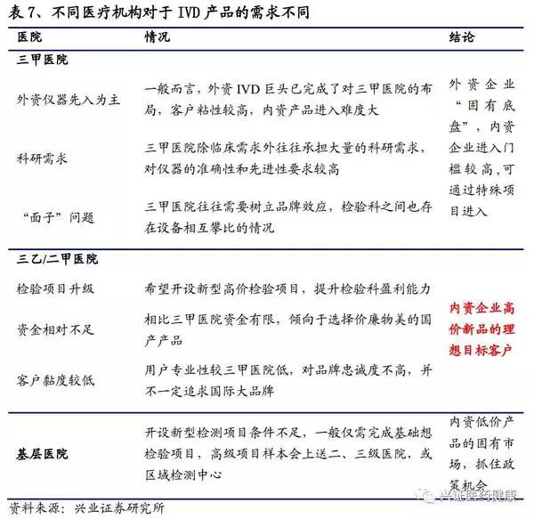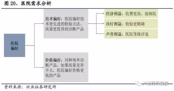 在進(jìn)口替代的進(jìn)程中,應(yīng)先分析終端的需求情況,以找準(zhǔn)定位,獲得收益。醫(yī)院在選用儀器的時(shí)候,主要有技術(shù)偏好和價(jià)格偏好,不同級(jí)別的醫(yī)院考慮的優(yōu)先度會(huì)有所不同,所以對(duì)其分類討論以找準(zhǔn)市場(chǎng)至關(guān)重要。
