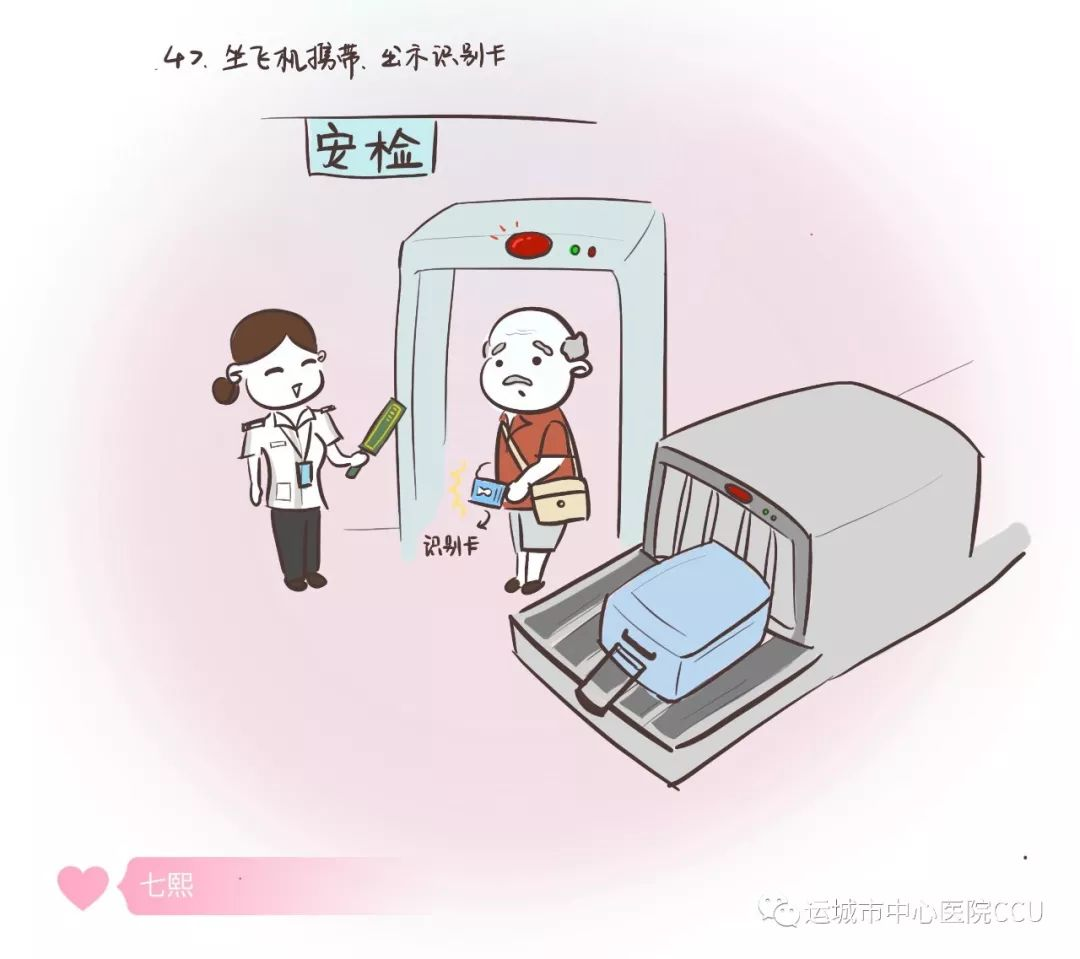 安檢:乘坐飛機(jī),安檢時(shí),應(yīng)對(duì)工作人員出示起搏器識(shí)別卡。