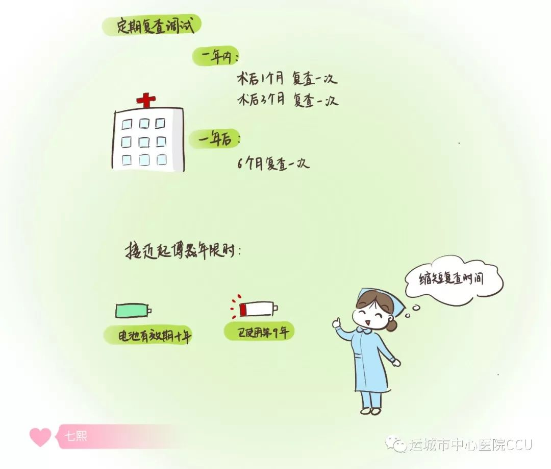 至此,心臟起搏器植入患者的出院宣教就結(jié)束了,掌握漫畫(huà)中的注意事項(xiàng)、學(xué)會(huì)自我病情的檢測(cè),對(duì)安裝心臟起搏器患者的日常生活有很大幫助,我們?cè)诖俗D咳丈眢w健康 !